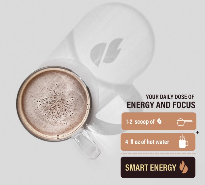 Being an instant-powdered product, you only have to mix one serving (0.35oz or 1 scoop) into 3.4oz of hot water or plant-based milk. Just pour, mix, and energize.